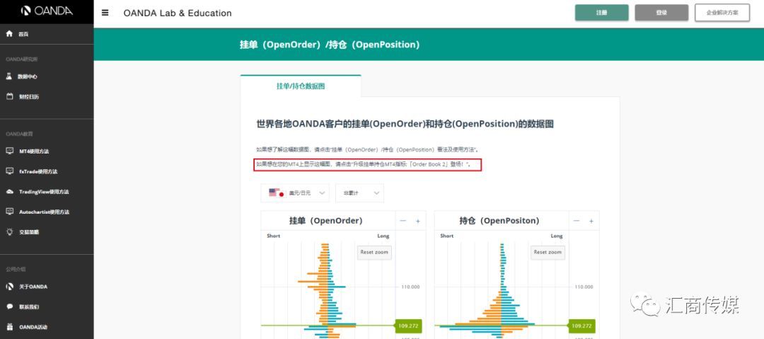 譬喻,举动环球史籍最深远的零售外汇经纪商之一,OANDA(安达)诈欺强盛的技巧秤谌,正在MT4平台上推出了独家挂单(Open Order)和持仓(Open Position)的目标。“挂单目标”是ONADA(安达)环球用户预期到达这个价位思众空订单数目图外化的器材;同样“持仓目标”是OANDA(安达)环球用户现正在持有的众空仓位数目图外化的器材。