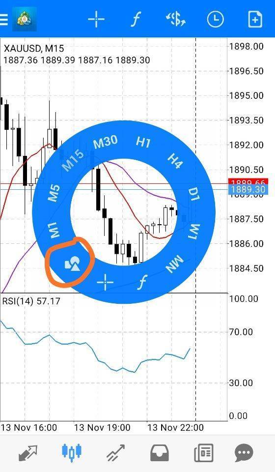 1、点击往还种类,再点击掀开图外,可能进入图外页面安卓手机刷机教程。如图所示,图外页面的上排性能键分辨是十字线、目标、切换种类、时候周期和下单。