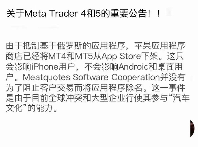 2022-09-24,因为俄乌时局影响,囚系扩散到了FX行业,没念到当时苹果手机直接下架了MT4/5软件。