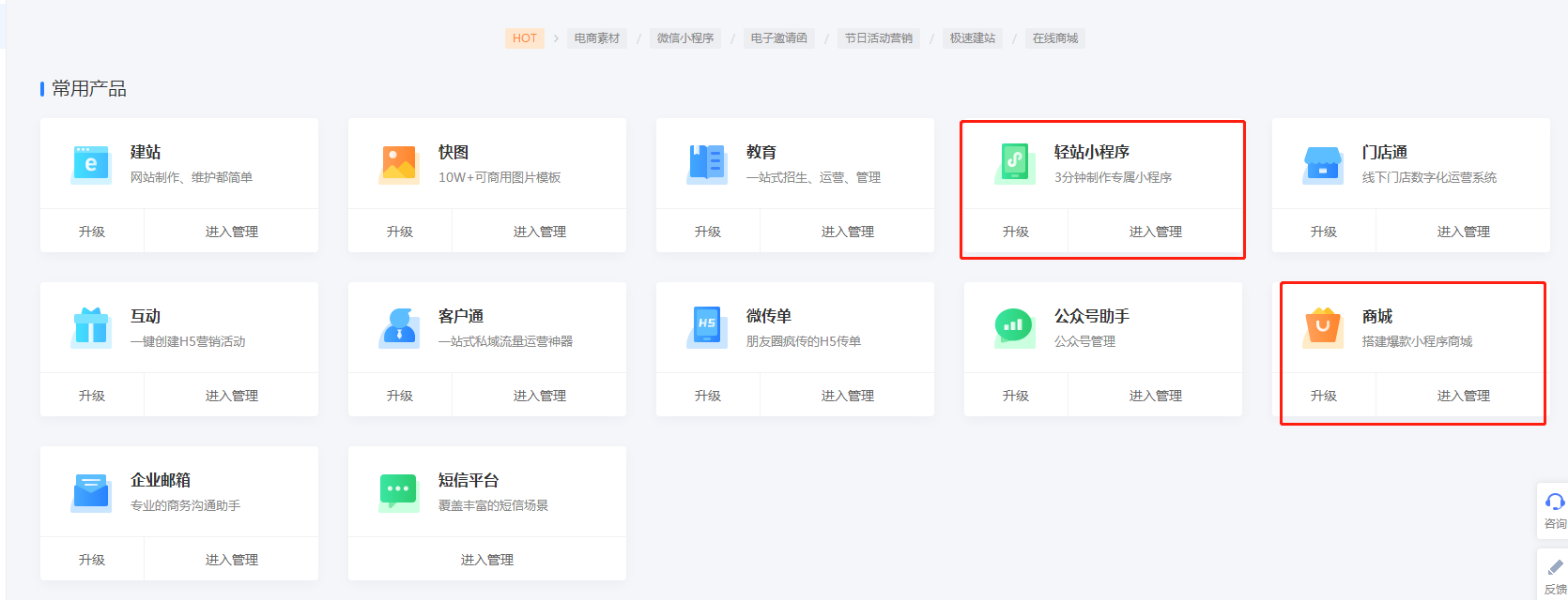 别的,修站编制还援救商城网站创制,商城小轨范创制,拓展互联网施行的渠道,全部能够查看下面的截图的举措: