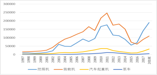 2018年,中邦工程呆滞销量增进了54.5%,到达34.4万台;归纳以上,整个截止2018岁暮中邦工程呆滞保有量约为724-781万台。