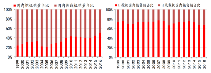 然而装载机单价低装载职能更好,发现机对装载机的代替性有控制的,到了肯定阶段之后,发现机与装载机比例会趋于安祥,以成熟墟市日本为例,发现机与装载机邦内出卖额比基础庇护正在3:1旁边。2017年邦内挖机出卖额占比约35%。