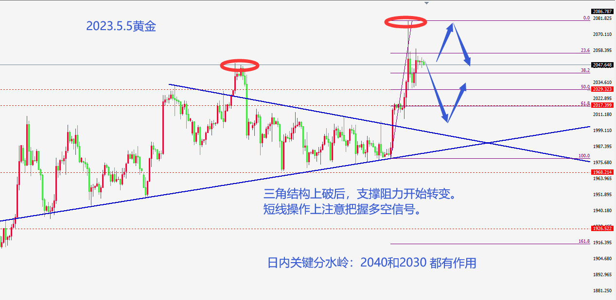 即日非农同时还要注视黄金不绝的冲高回落行情的概率,这里的冲高指的是冲锋2075 78。黄金时间面因为上破三角机闭,众头强势发力。短期内不看大跌,高位宽幅颠簸概率较大。