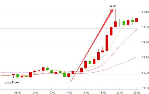 周二(2月21日)欧市尾盘时段,邦际原油代价大幅上涨,缘于下昼时欧佩克秘书长称沙特是以100%减产率为倾向踊跃减产,这让墟市放肆做众原油,同时少有据显示原油众头范围创下史书新高。 目前,美邦WTI原油4月期货最高上涨至54.85美元/桶,涨幅近2%,同时,本领面来将,油价涨破了54.13以及54.34美元两个前期高点,目前上方阻力依然上移至近两年的高点55.24美元/桶。 美邦WTI原油从四小时走势图来看,油价大幅走高,而且打破了前期的两个点,笔者个体见识看好后市可以涨至55美元大合,目前支柱可体贴54美元合口,进一步体贴53.5美元左近。