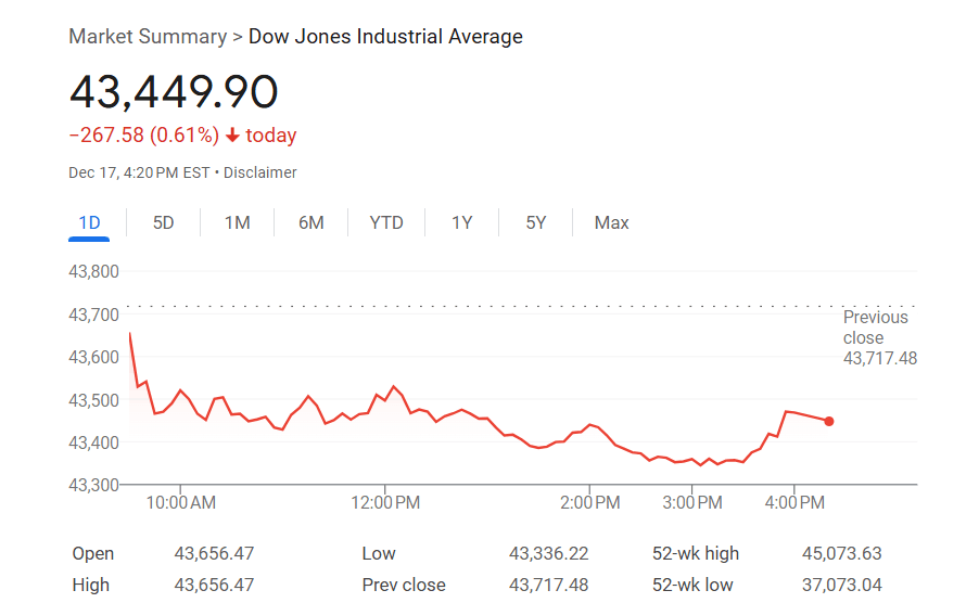 道指近来跌跌不休2024/12/18美国今日实时行情,作家:何浩,原文题目:《发作了什么?道指连跌九天,创1978年以还最长连跌!》,题图来自:AI天生